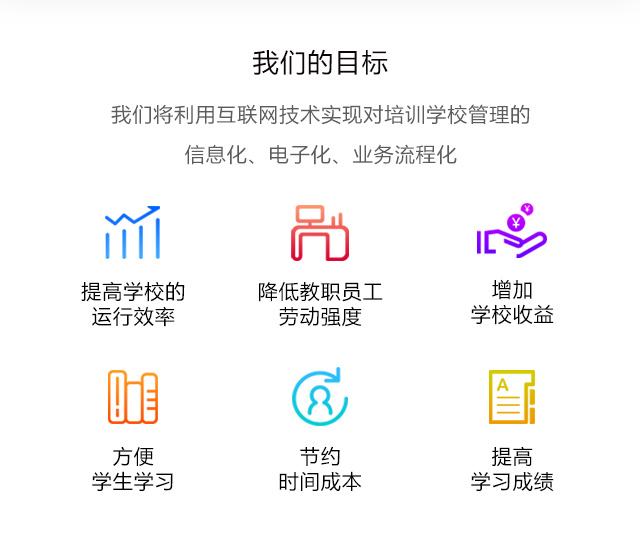 我们将利用互联网技术实现对培训学校管理的信息化、电子化、业务流程化
